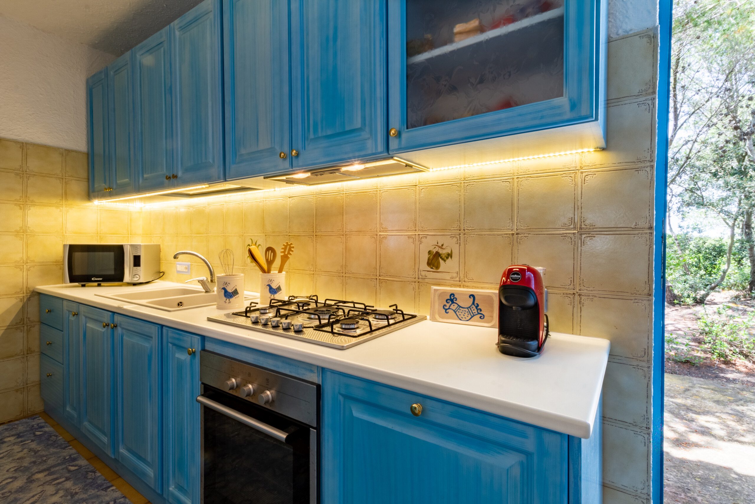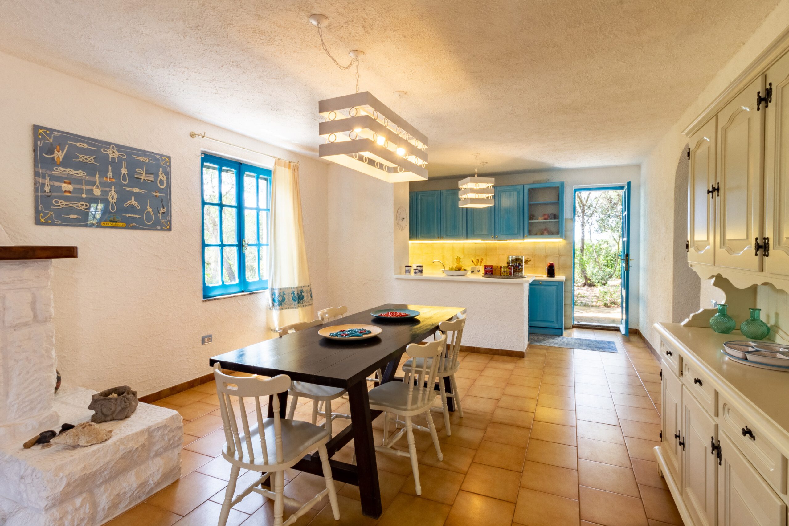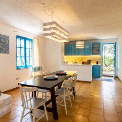 Piano terra: ampio soggiorno con cucina, due camere da letto (una matrimoniale e una doppia con letto a castello), un bagno.