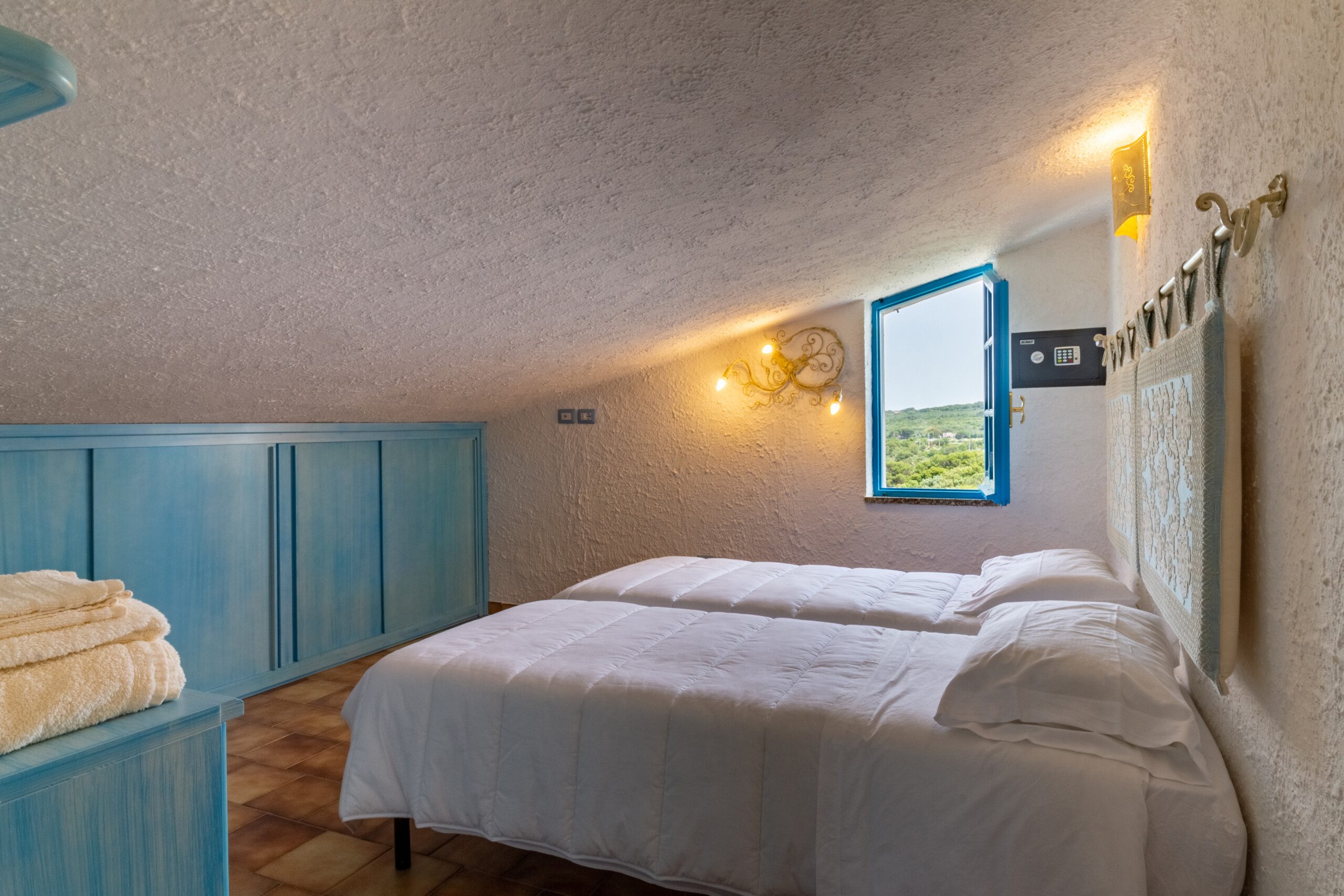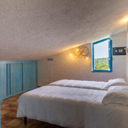 Primo piano: due camere da letto (una doppia e una matrimoniale), un bagno.